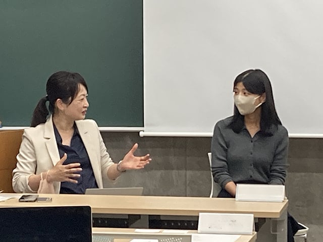 研修会終了後、今年で3回目となる國分学長と教育支援系の兼任教員による「懇談会」が開催されました。各兼任教員から、授業の内外における各コースの特性に応じたキャリア支援の工夫や実践について報告があり、様々な課題も共有されました。これらを踏まえ、今後の支援体制の強化に向けて、情報発信の工夫、カリキュラムと一体化したキャリア支援、卒業生との交流機会の充実など活発な意見交換が行われました。