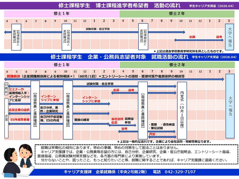 ここでは、将来のために、修士課程学生が各学年で何をするべきかを示しています。