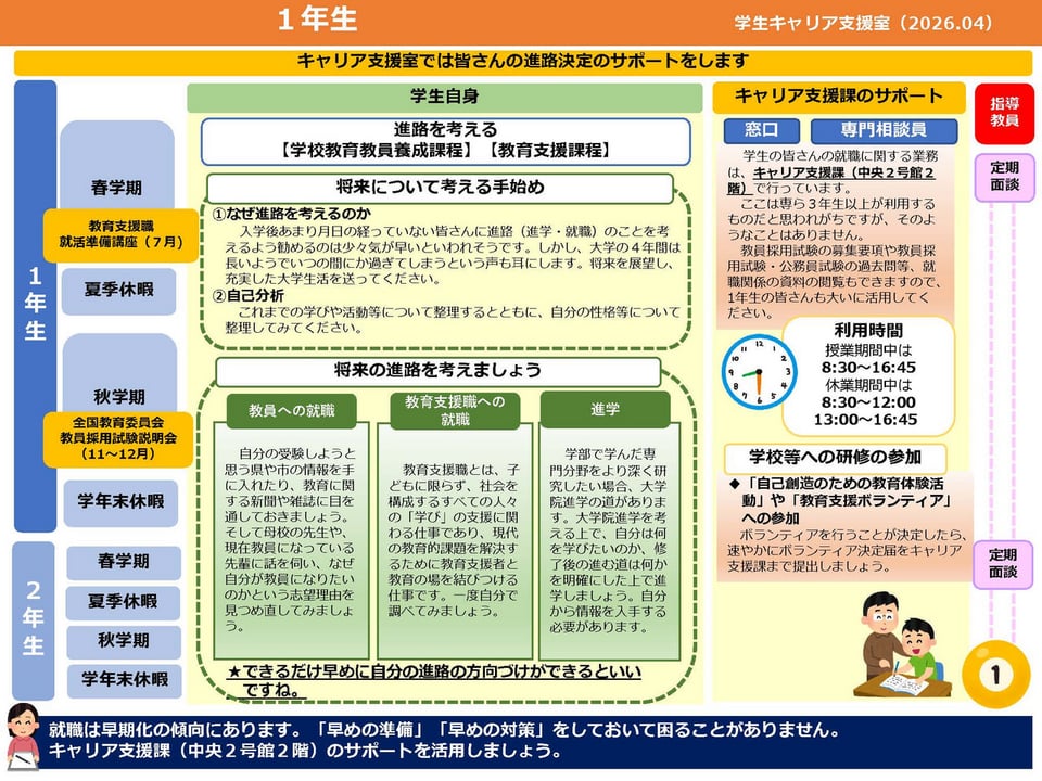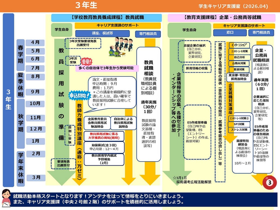 自分の学年のカレンダーを確認し、将来のために準備を進めましょう。